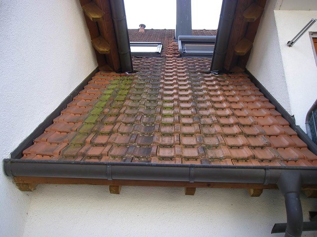 hier mal 3 verschiedene Bilder von Dach. Auf der Westseite, letztes Bild, hat das Dach weniger Belag als auf der Ostseite. So sieht unser Dach jetzt, bis auf ein paar kleine Stellen, aus. Super 👍👍👍